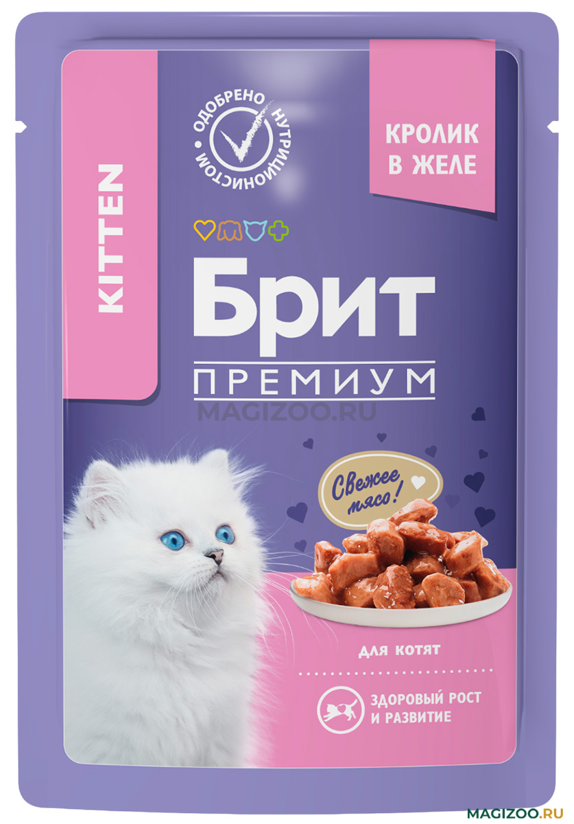 БРИТ ПРЕМИУМ способствует образованию благоприятной среды в организме и улучшает качество жизни Вашего котенка.