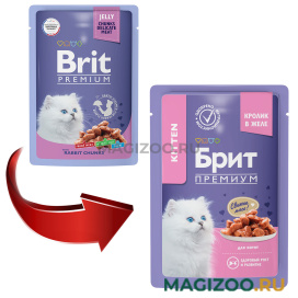 Полнорационный влажный корм Brit Premium для котят c кроликом в желе.