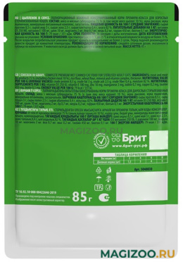 Полнорационный влажный корм премиум – класса для кастрированных котов и стерилизованных кошек с курицей в соусе. Кошки - большие гурманы и очень любят разнообразие в своем рационе. Именно для них, а также для кошек, у которых не очень хороший аппетит, создана линейка консервов БРИТ ПРЕМИУМ с разнообразными вкусами.