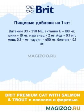 У меня кошка взрослая, с проблемами пищеварения. Знакомая ветеринар посоветовала этот корм от Брит. Я чередую влажный и сухой корм. Влажный корм с форелью и треской она любит больше. Поэтому пока кормлю им. 3-4 пакетика в день и кошка сытая и довольная. И здоровье вроде в норме. Цена адекватная. Так что корм советую.