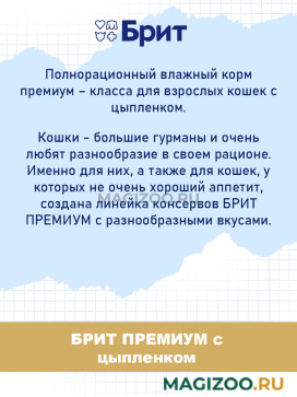 Полнорационный влажный корм премиум – класса для взрослых кошек с цыпленком.
