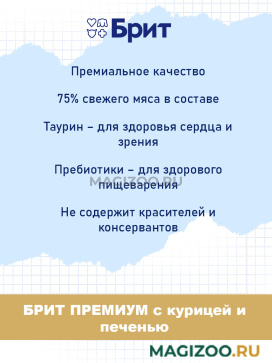 Корм БРИТ ПРЕМИУМ изготовлен из 100 % натуральных компонентов - это не только вкусно, но и полезно.