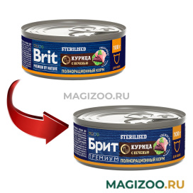 Полнорационный влажный корм премиум – класса для кастрированных котов и стерилизованных кошек с курицей и печенью.