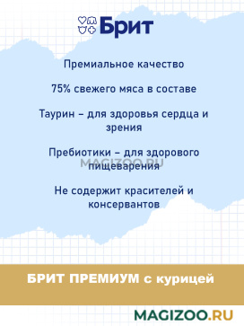 Корм БРИТ ПРЕМИУМ изготовлен из 100 % натуральных компонентов - это не только вкусно, но и полезно.