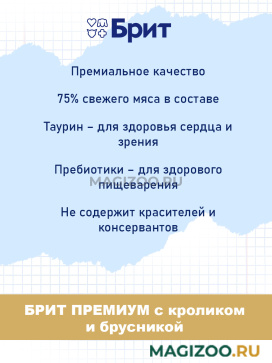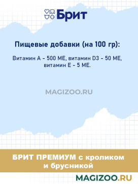Информация о составе и ингредиентах, цветовом решении, технических и иных характеристиках, стране-изготовителе, внешнем виде и комплекте поставки товара носит справочный характер и основана на последних доступных к моменту публикации сведениях. Доставка данного товара осуществляется во все регионы РФ.Здоровье питомца является главным принципом компании Brit-VAFO PRAHA. Корма под брендом BRIT производятся исключительно из натуральных и легко усваиваемых ингредиентов. В составе продукции нет сои и ГМО.