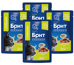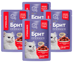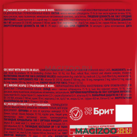 Полнорационный влажный корм премиум – класса для кастрированных котов и стерилизованных кошек с мясным ассорти и потрошками.