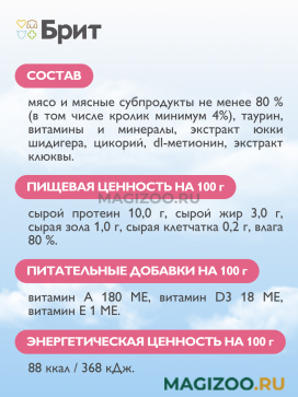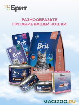Полнорационный консервированный корм Брит премиум класса. Воздушный паштет с кроликом для кастрированных котов и стерилизованных кошек.