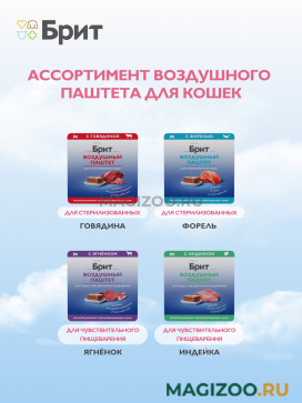 Воздушные паштеты Брит могут использоваться на постоянной основе для сбалансированного питания кошек и собак, так как содержат все необходимые для питомца питательные вещества, витамины и микроэлементы.