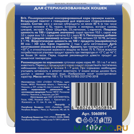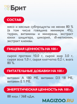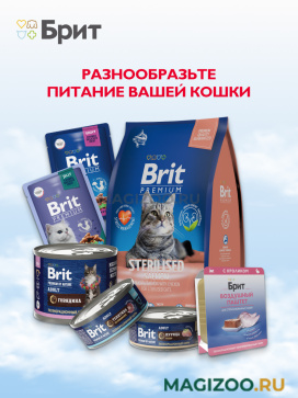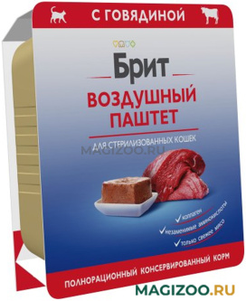 Полнорационный консервированный корм Брит премиум класса. Воздушный паштет с говядиной для кастрированных котов и стерилизованных кошек.
