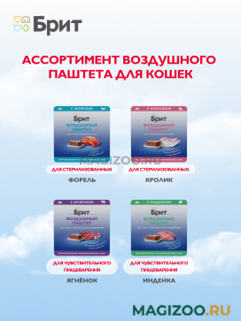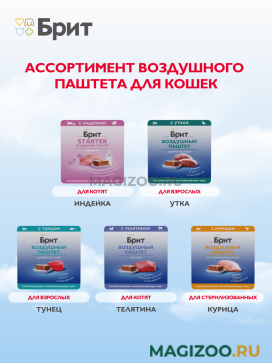 Воздушные паштеты Брит могут использоваться на постоянной основе для сбалансированного питания кошек и собак, так как содержат все необходимые для питомца питательные вещества, витамины и микроэлементы.