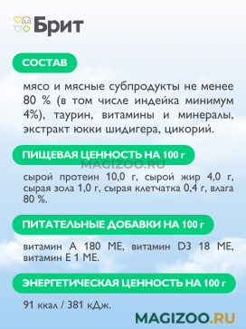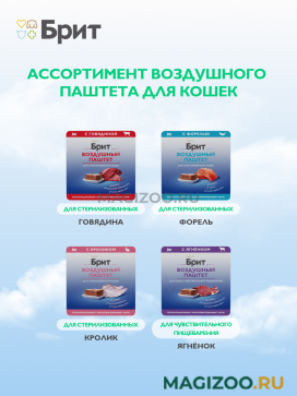 Воздушные паштеты Брит могут использоваться на постоянной основе для сбалансированного питания кошек и собак, так как содержат все необходимые для питомца питательные вещества, витамины и микроэлементы.