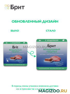 Полнорационный консервированный корм Брит премиум класса. Воздушный паштет с индейкой для взрослых кошек с чувствительным пищеварением.