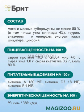 Воздушные паштеты Brit могут использоваться на постоянной основе для сбалансированного питания кошек и собак, так как содержат все необходимые для питомца питательные вещества, витамины и микроэлементы.