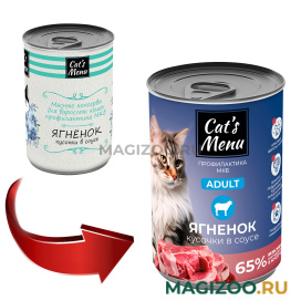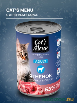 CAT’S MENU с ягнёнком в соусе взял канадскому сфинксу. Думал, Олимп откажется от такого угощения. Он часто нос воротит от новых консервов. Но, учитывая, что наш корм значительно подорожал, пришлось идти на крайние меры) Содержимое банки- кусочки в соусе. Запах приятный, без примесей. Олимп за несколько приёмов слопал всю банку.