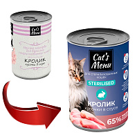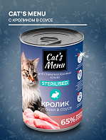Влажный корм (консервы) CAT’S MENU для взрослых кастрированных котов и стерилизованных кошек с кроликом в соусе (340 гр)