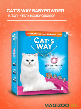 CAT'S WAY BABYPOWDER - это наполнитель для кошачьего туалета из 100% белой натуральной бентонитовой глины с легким ароматом детской присыпки.