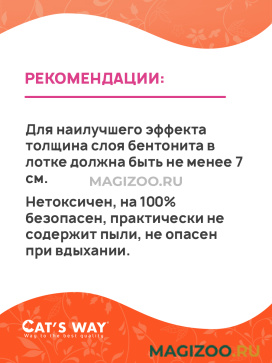 ОЧЕНЬ ВАЖНО! Для наилучшего эффекта толщина слоя бентонита в лотке должна быть не менее 7 см. Нетоксичен, на 100% безопасен, практически не содержит пыли, не опасен при вдыхании.