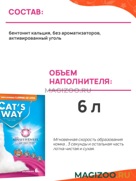 Информация о составе и ингредиентах, цветовом решении, технических и иных характеристиках, стране-изготовителе, внешнем виде и комплекте поставки товара носит справочный характер и основана на последних доступных к моменту публикации сведениях. Доставка данного товара осуществляется во все регионы РФ.Наполнитель для кошек CAT’S WAY производится из бентонитовых минералов с высоким содержанием монтмориллонита и пластичностью. В то время как особенность монтмориллонита обеспечивает быстрое и плавное слипание, высокая пластичность сводит к минимуму образование пыли из-за трения зерен гранул друг о друга.