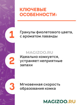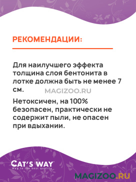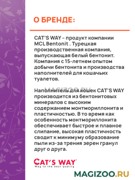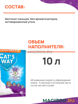 CAT'S WAY LAVANDER - это наполнитель для кошачьего туалета из 100% белой натуральной бентонитовой глины с легким ароматом лавандвы.