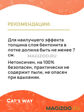 ОЧЕНЬ ВАЖНО! Для наилучшего эффекта толщина слоя бентонита в лотке должна быть не менее 7 см. Нетоксичен, на 100% безопасен, практически не содержит пыли, не опасен при вдыхании.