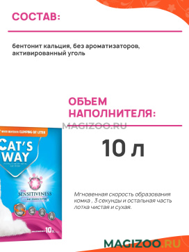 Благодаря белым минералам бентонита, которые символизируют чистоту, свежесть и гигиену, наполнитель CAT'S WAY BABYPOWDER создает комфортные условия для Вашей кошки.