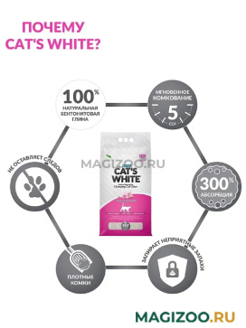 Информация о составе и ингредиентах, цветовом решении, технических и иных характеристиках, стране-изготовителе, внешнем виде и комплекте поставки товара носит справочный характер и основана на последних доступных к моменту публикации сведениях. Доставка данного товара осуществляется во все регионы РФ.CAT’S WHITE – премиальные комкующиеся наполнители для кошачьего туалета из 100% натуральной белой бентонитовой глины в эко-упаковке.