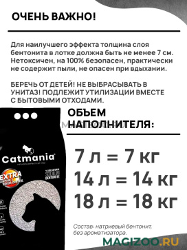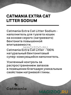 Catmania Extra Cat Litter Sodium - наполнитель для туалета кошек на основе серого (натриевого) бентонита повышенной впитываемости.