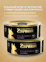 Влажный корм (консервы) ЧЕТВЕРОНОГИЙ ГУРМАН GOLDEN LINE для взрослых кошек с телятиной натуральной в желе (100 гр)