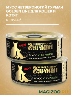 ЧЕТВЕРОНОГИЙ ГУРМАН GOLDEN LINE мусс для кошек и котят с 1 месяца – это влажный корм суперпремиум класса, в составе которого только мясо и сливочный соус.
