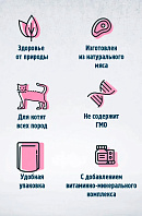 - Корм полностью натуральный – в его составе нет искусственных красителей, ароматизаторов, усилителей вкуса и ГМО.