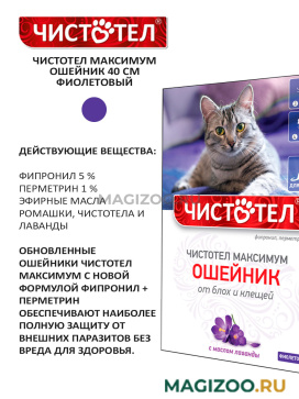 ЧИСТОТЕЛ МАКСИМУМ применяют для уничтожения блох, вшей, власоедов и иксодовых клещей, паразитирующих на кошках и котятах старше 4-месячного возраста, а также для защиты животных от их нападения, особенно в теплое время года (в период повышенной активности паразитов).