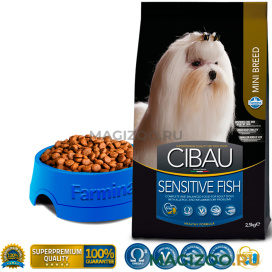 Корм CIBAU SENSITIVE FISH MINI для взрослых собак маленьких пород содержит сбалансированный уровень калорий для здоровой и активной жизни Вашего питомца.
