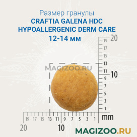 Craftia Galena Hypoallergenic Derm Care - полнорационный диетический гипоаллергенный корм для собак, разработан при дерматологических заболеваниях и избыточном выпадении шерсти. Рекомендуется для снижения симптомов непереносимости ингредиентов и питательных веществ (например, при пищевой аллергии), а также, для восстановления нормального функционирования кожи. Рацион имеет монопротеиновую формулу на основе легкоусвояемого белка и содержит высокий уровень Омега-6 и Омега-3 жирных кислот (эйкозапентаеновой и докозагексаеновой кислот).