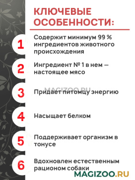 - Содержит минимум 99 % ингредиентов животного происхождения.