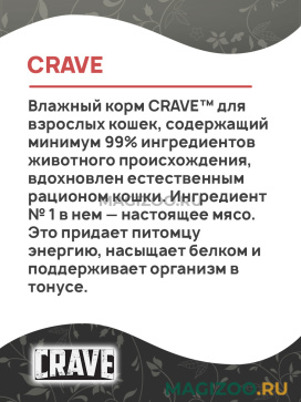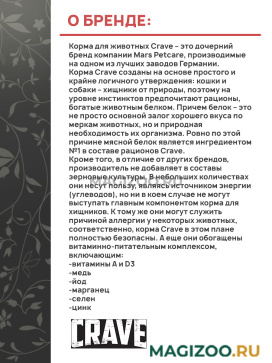 Корма для животных Crave – это дочерний бренд компании Mars Petcare, производимые на одном из лучших заводов Германии.