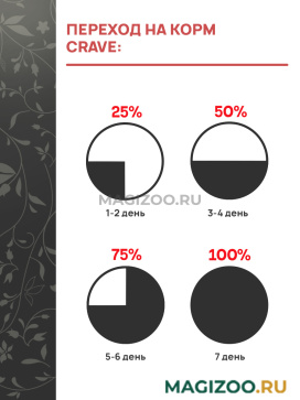 Корма Crave созданы на основе простого и крайне логичного утверждения: кошки и собаки – хищники от природы, поэтому на уровне инстинктов предпочитают рационы, богатые животным белком. Причем белок – это не просто основной залог хорошего вкуса по меркам животных, но и природная необходимость их организма. Ровно по этой причине мясной белок является ингредиентом №1 в составе рационов Crave.