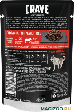 Консервированный полнорационный беззерновой корм CRAVE для собак с говядиной в желе.
