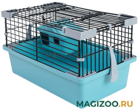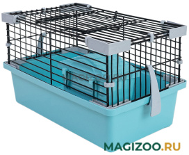 Клетка металлическая на пластиковом поддоне. Разборная конструкция - 4 стенки и крыша. Дверцы находятся в передней стенке и крыше.