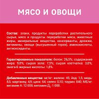 Состав товара:злаки, мясо и продукты переработки мяса, продукты переработки растительного сырья, масла и жиры, экстракты растительного белка, минеральные вещества, консерванты, аминокислоты, овощи (высушенный горох), витамины, антиоксиданты.