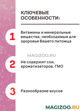 - Витамины и минеральные вещества, необходимые для здоровья Вашего питомца.