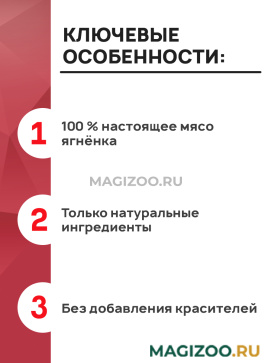Сочные ломтики ягненка доставят массу удовольствия всем кошкам, а благодаря гипоаллергенным свойствам подойдут даже котятам.