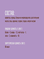 Гарантированный анализ: белок 28,00 гр; жир 6,00 гр; влага 25,00 гр; клетчатка 0,10 гр;