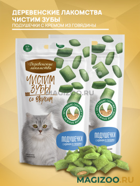Хрустящие подушечки, благодаря своей пористой структуре, удаляют зубной налёт, предотвращают образование зубного камня и освежают дыхание.