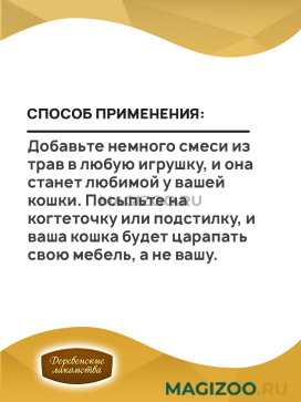 Добавьте немного смеси из трав в любую игрушку, и она станет любимой у вашей кошки. Посыпьте на когтеточку или подстилку, и ваша кошка будет царапать свою мебель, а не вашу.