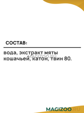 Состав: вода, экстракт мяты кошачьей, катон, твин 80.