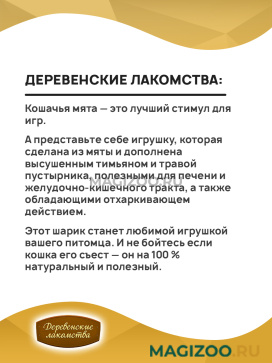 Этот шарик станет любимой игрушкой вашего питомца. И не бойтесь если кошка его съест — он на 100 % натуральный и полезный.