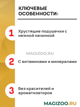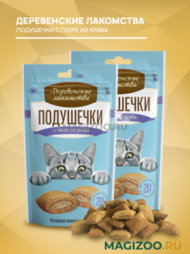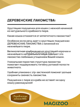 Хрустящие подушечки для кошек с нежной начинкой из натурального крабового пюре.