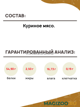 Сушенные колечки из отборного мяса курицы достаточно крепки для долгого жевания, но в то же время достаточно нежны, чтобы не повредить прикус Вашего щенка.