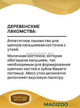 Молочная косточка, которая обогащена кальцием, так необходимым для формирования крепких костей и зубов Вашего питомца. Мясо утки деликатно дополняет вкусовую палитру.