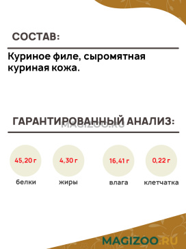 Состав: куриное филе, сыромятная куриная кожа.